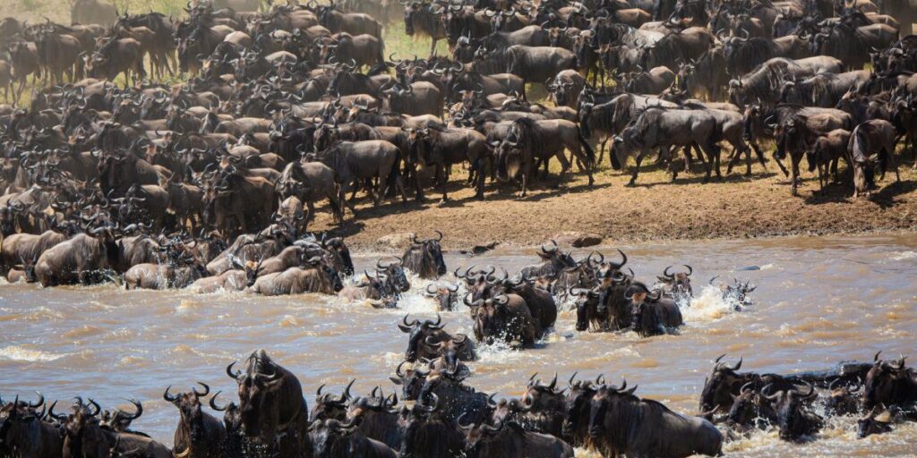 The Great Migration is one of the most incredible natural spectacles on earth, and Kenya’s Masai Mara National Reserve is at the heart of it. Every year, more than 1.5 million wildebeests, alongside zebras and gazelles, journey across the Serengeti-Mara ecosystem in search of fresh grazing. This migration culminates in the dramatic river crossings, where animals must navigate crocodile-infested waters. Witnessing this awe-inspiring event in the Mara is a bucket-list experience for wildlife enthusiasts and a testament to Kenya’s incredible natural heritage.